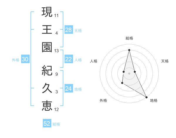 現王園 紀久恵さんを姓名の画数から五運を鑑定