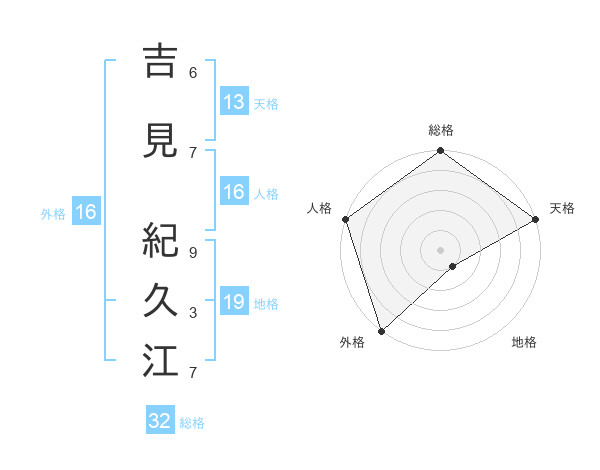 吉見 紀久江さんの総格は32画の5点!