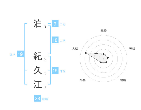泊 紀久江さんを姓名の画数から五運を鑑定