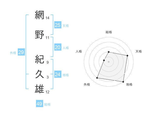 網野 紀久雄さんを姓名の画数から五運を鑑定