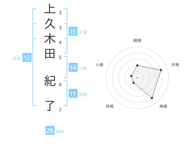 上久木田 紀了さんを姓名の画数から五運を鑑定