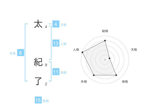 太 紀了さんの総格は15画の4点!