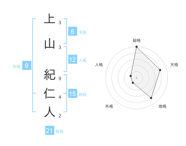上山 紀仁人さんを姓名の画数から五運を鑑定