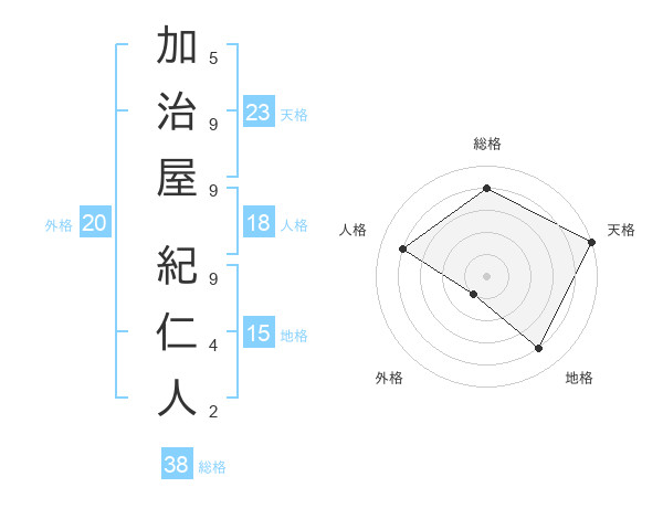 加治屋 紀仁人さんを姓名の画数から五運を鑑定