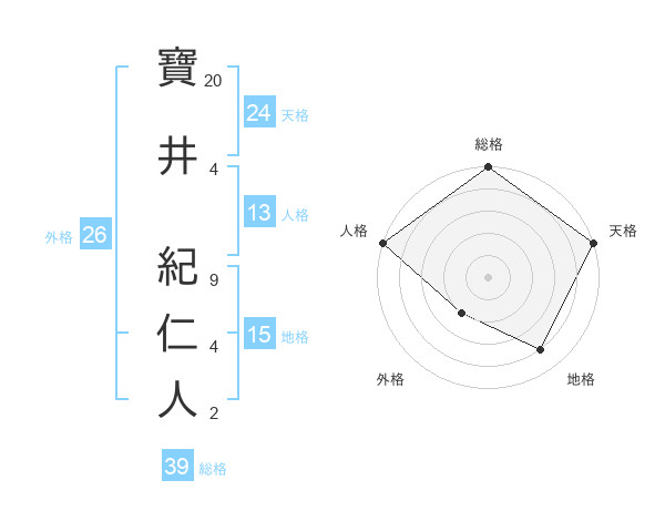 寶井 紀仁人さんを姓名の画数から五運を鑑定