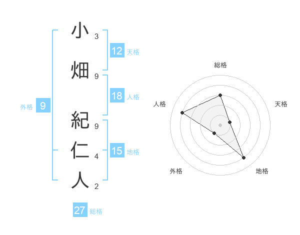 小畑 紀仁人さんを姓名の画数から五運を鑑定