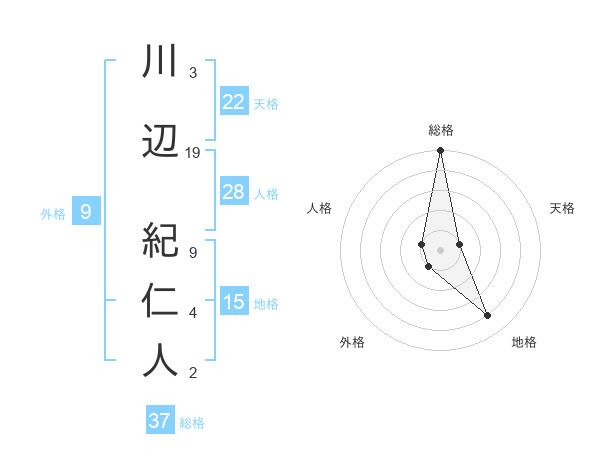川辺 紀仁人さんを姓名の画数から五運を鑑定