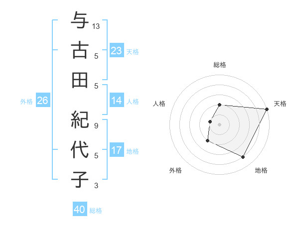 与古田 紀代子さんを姓名の画数から五運を鑑定