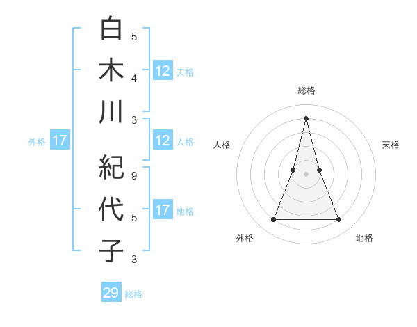 白木川 紀代子さんを姓名の画数から五運を鑑定