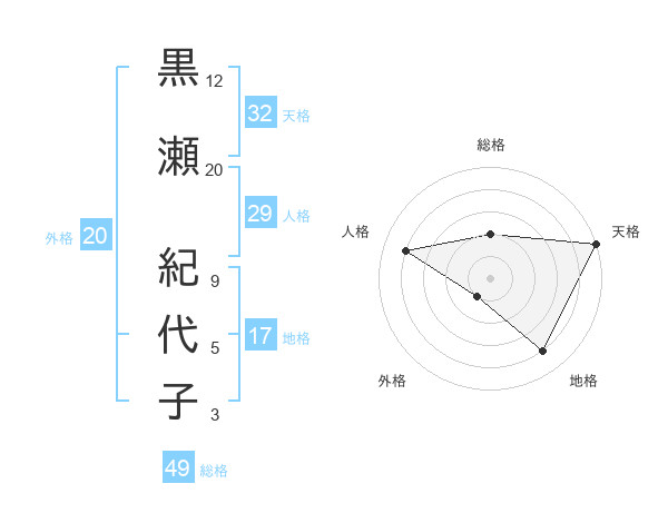 黒瀬 紀代子さんを姓名の画数から五運を鑑定