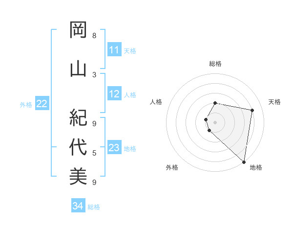 岡山 紀代美さんを姓名の画数から五運を鑑定