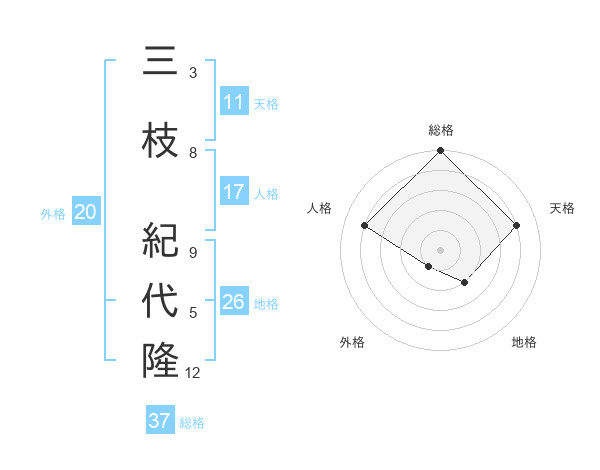三枝 紀代隆さんを姓名の画数から五運を鑑定
