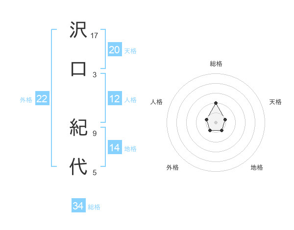 沢口 紀代さんを姓名の画数から五運を鑑定