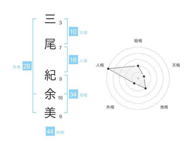 三尾 紀余美さんを姓名の画数から五運を鑑定