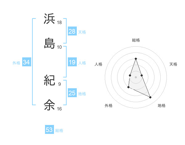 浜島 紀余さんの総格は53画の3点!