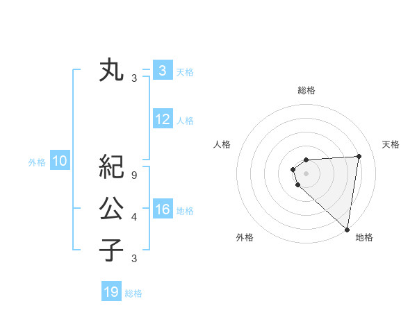 丸 紀公子さんの総格は19画の1点!