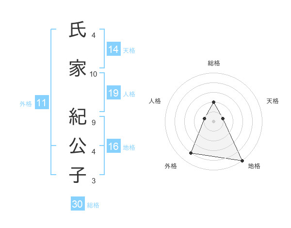 氏家 紀公子さんの総格は30画の2点!