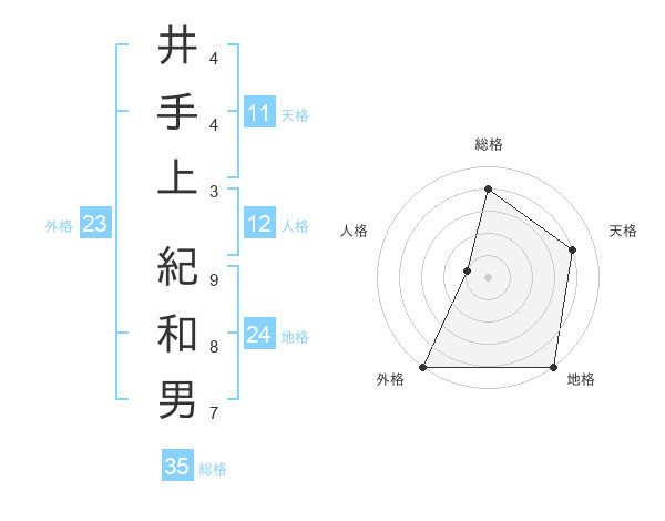 井手上 紀和男さんの総格は35画の4点!