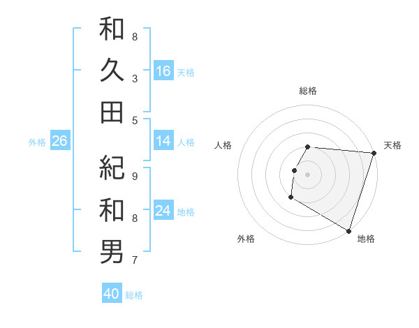 和久田 紀和男さんを姓名の画数から五運を鑑定