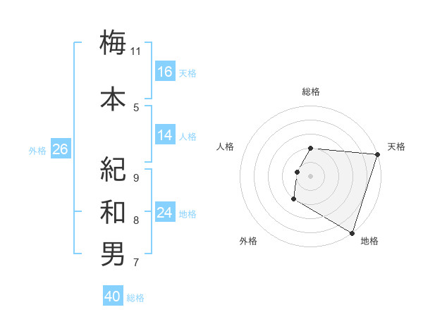 梅本 紀和男さんを姓名の画数から五運を鑑定
