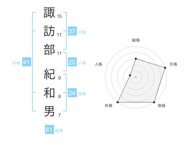 諏訪部 紀和男さんを姓名の画数から五運を鑑定