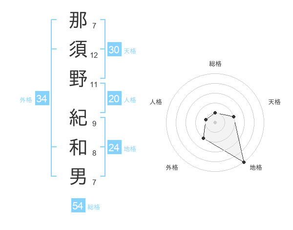 那須野 紀和男さんを姓名の画数から五運を鑑定