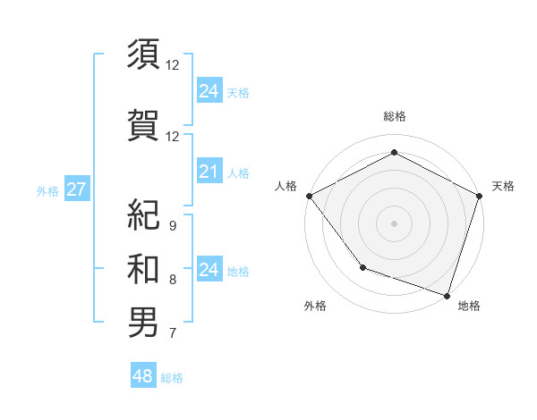 須賀 紀和男さんを姓名の画数から五運を鑑定
