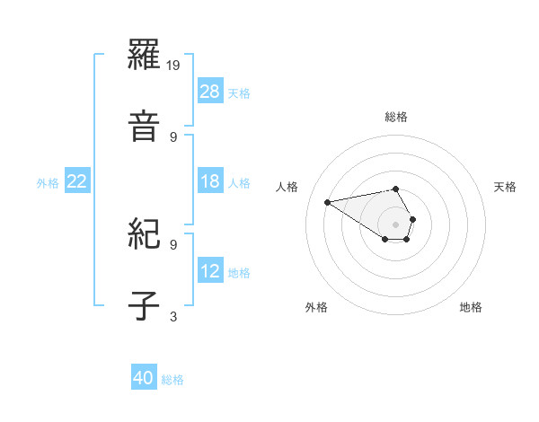 羅音 紀子さんを姓名の画数から五運を鑑定