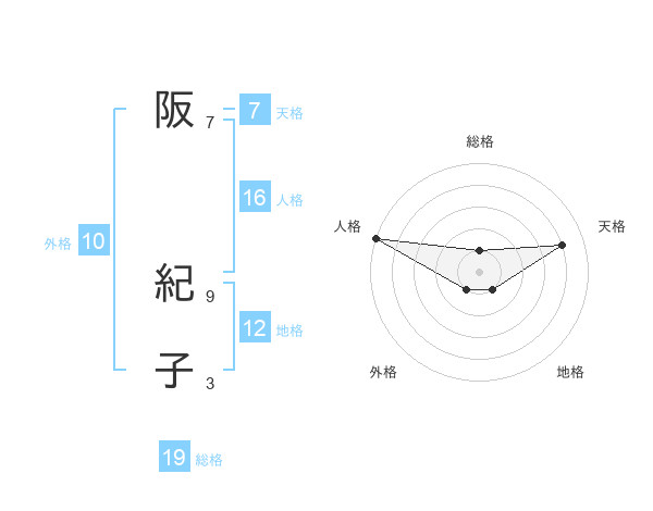 阪 紀子さんの総格は19画の1点!