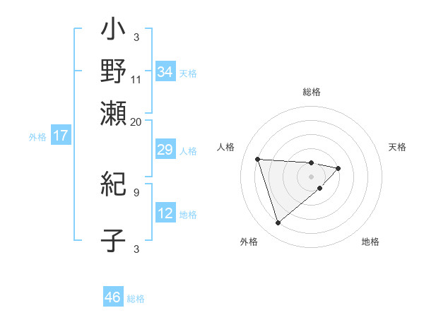小野瀬 紀子さんの天格は34画の2点!