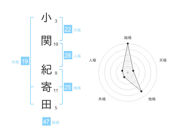 小関 紀寄田さんを姓名の画数から五運を鑑定