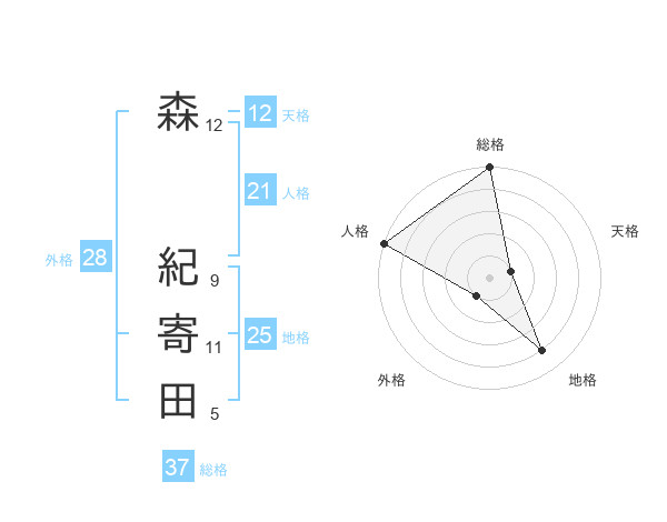森 紀寄田さんを姓名の画数から五運を鑑定