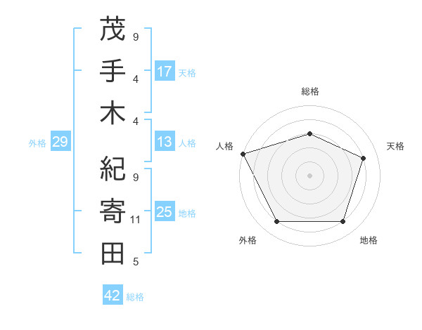 茂手木 紀寄田さんの天格は17画の4点!