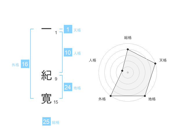 一 紀寛さんの総格は25画の4点!