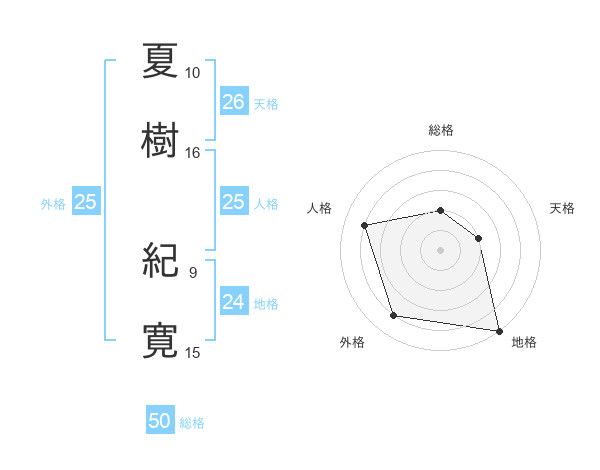 夏樹 紀寛さんの総格は50画の2点!