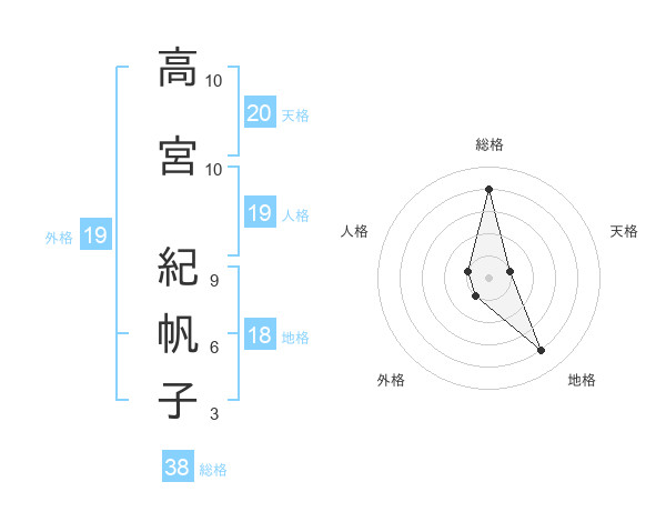 高宮 紀帆子さんの総格は38画の4点!