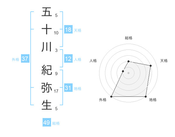 五十川 紀弥生さんの外格は37画の5点!