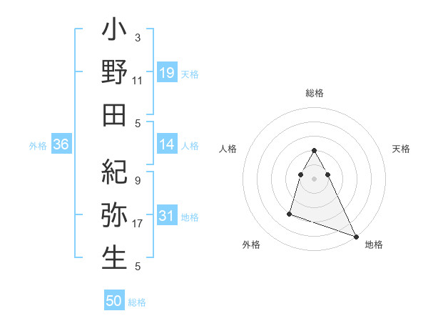 小野田 紀弥生さんを姓名の画数から五運を鑑定
