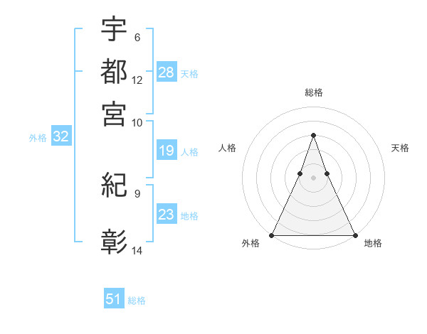 宇都宮 紀彰さんの総格は51画の3点!