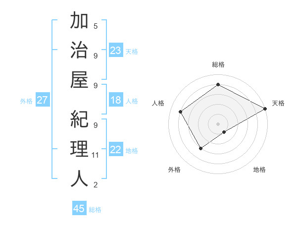 加治屋 紀理人さんを姓名の画数から五運を鑑定