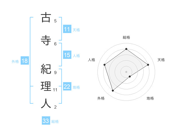 古寺 紀理人さんの地格は22画の1点!