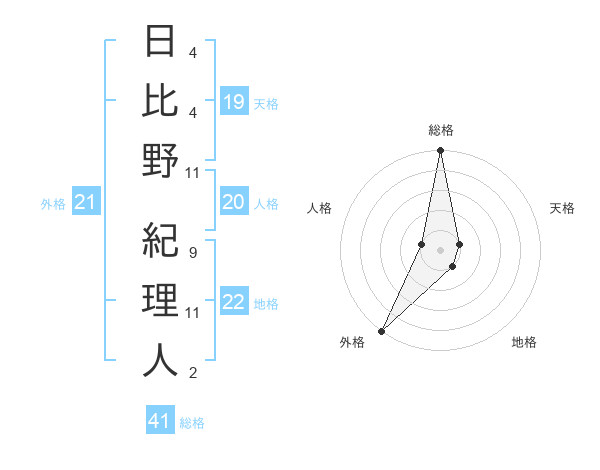 日比野 紀理人さんの外格は21画の5点!