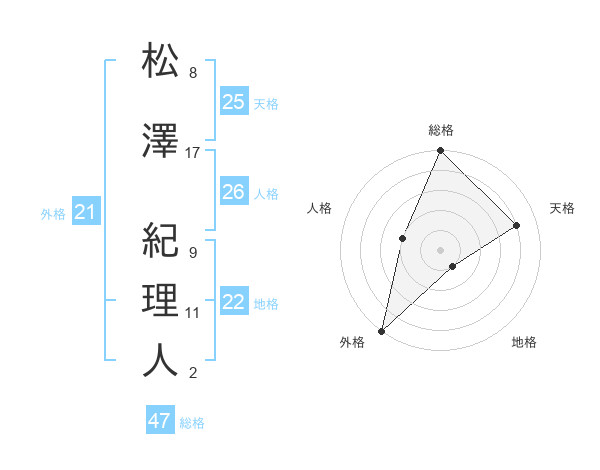 松澤 紀理人さんの総格は47画の5点!