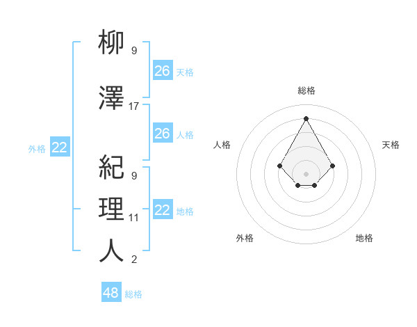 柳澤 紀理人さんの総格は48画の4点!