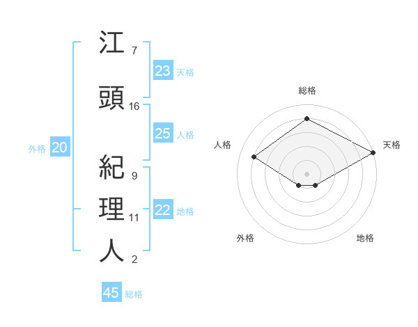 江頭 紀理人さんの総格は45画の4点!