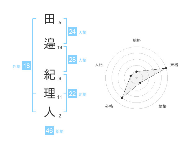 田邉 紀理人さんの天格は24画の5点!