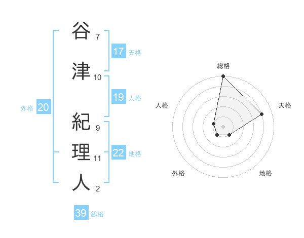 谷津 紀理人さんを姓名の画数から五運を鑑定
