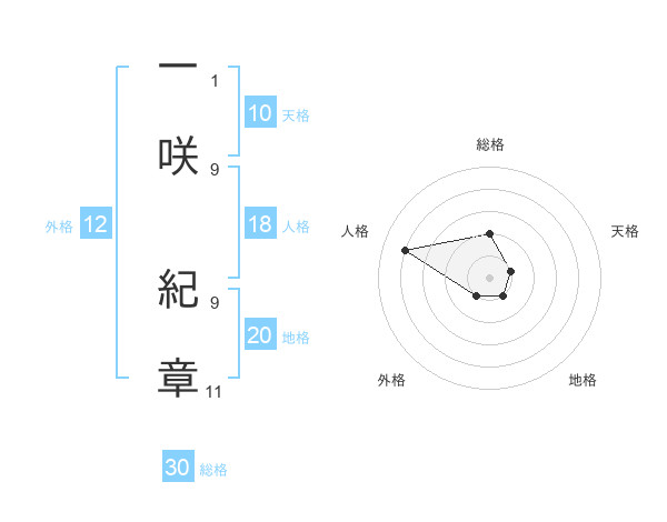 一咲 紀章さんの地格は20画の1点!