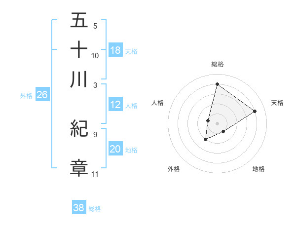 五十川 紀章さんを姓名の画数から五運を鑑定