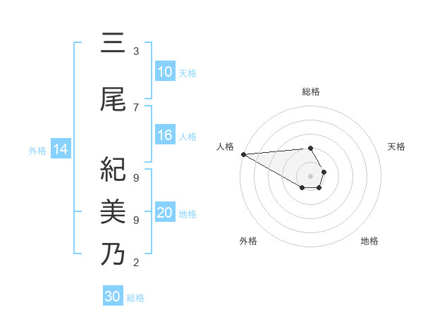 三尾 紀美乃さんを姓名の画数から五運を鑑定